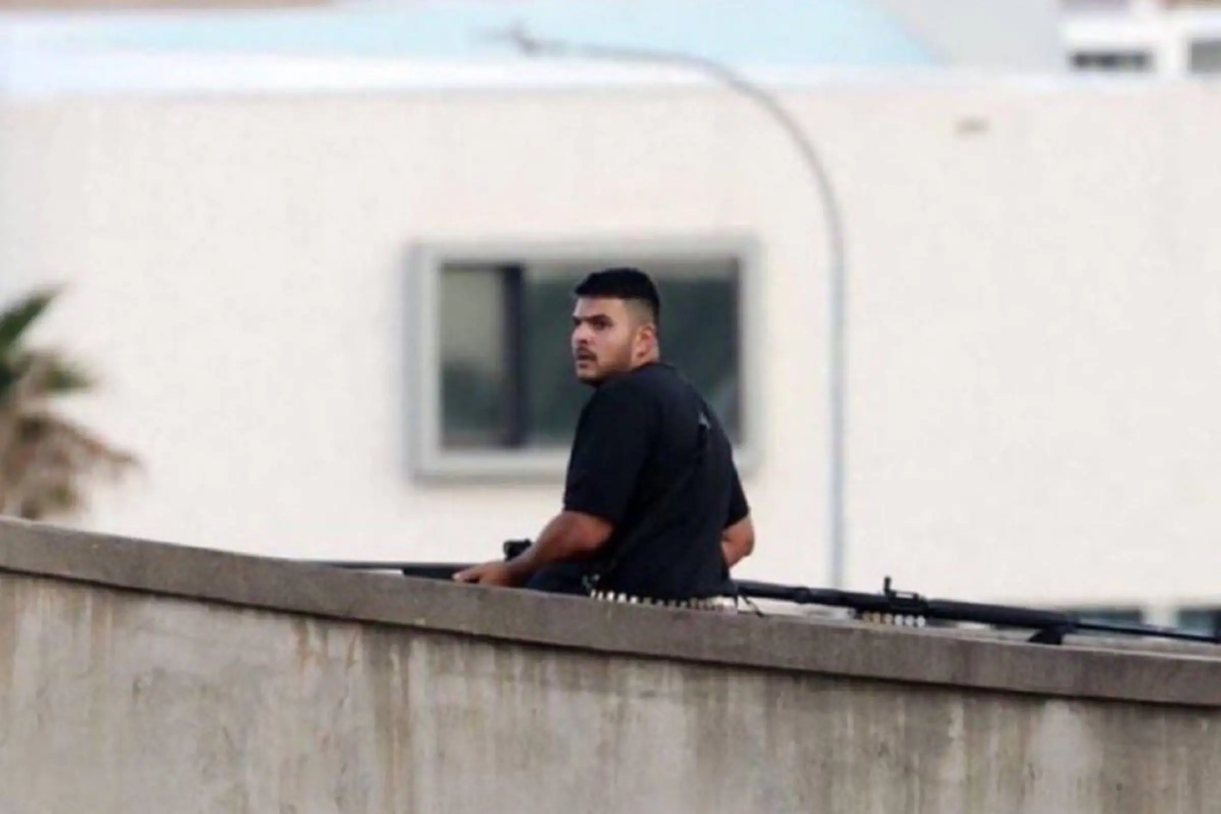 Uno de los presuntos atacantes observado con un fusil desde una azotea durante el tiroteo en la playa de Bondi, Sídney. (Foto: Instagram)
