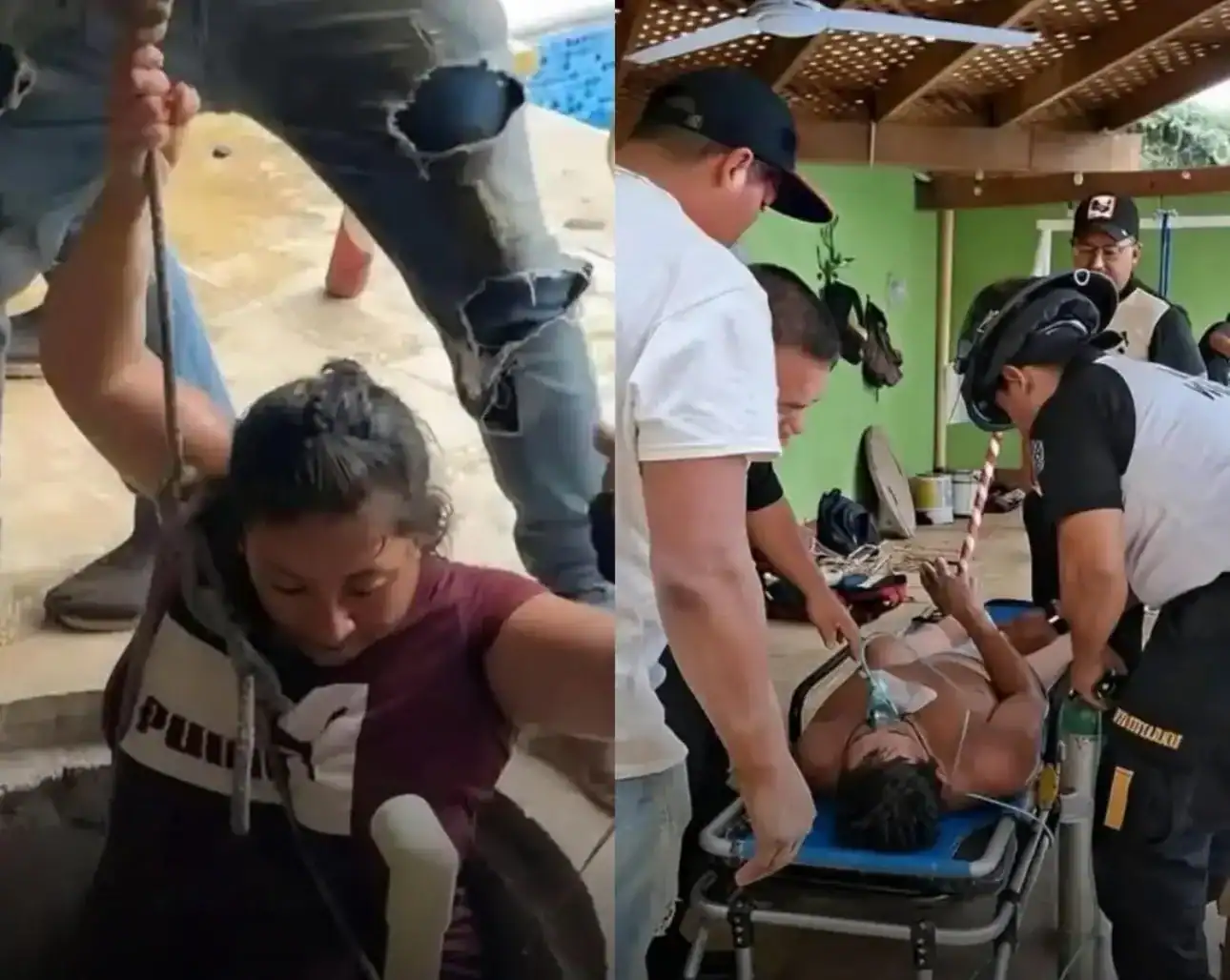 Mujer desciende a un pozo de 72 metros para rescatar a su marido inconsciente