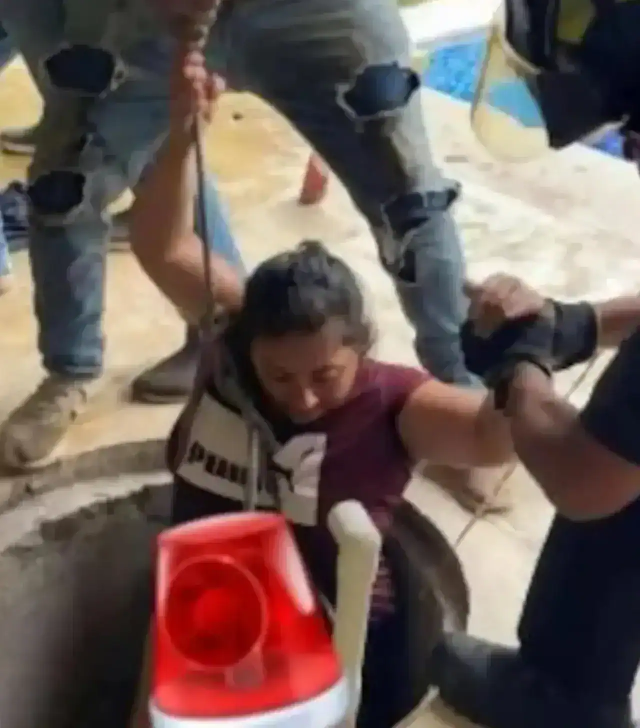 Dentro del espacio angosto, Jennifer logra estabilizar el cuerpo de su esposo, manteniéndolo alineado con el eje del pozo para facilitar el posterior izado. A lo largo de la operación, recibió indicaciones de quienes aguardaban arriba, que le pasaban instrucciones mediante gritos y gestos. Estas maniobras en espacios confinados suponen un desafío técnico y físico, dado el reducido margen de movimiento y la falta de ventilación natural.
