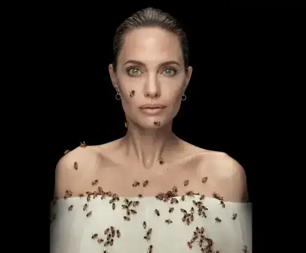 En cuanto al resultado, las fotografías muestran a Jolie en una aparente calma, con la mirada fija en el objetivo, mientras el enjambre cubre gran parte de su torso y brazos. Las imágenes llaman poderosamente la atención por el contraste entre la delicadeza de la actriz y la fuerza del insecto colectivo.