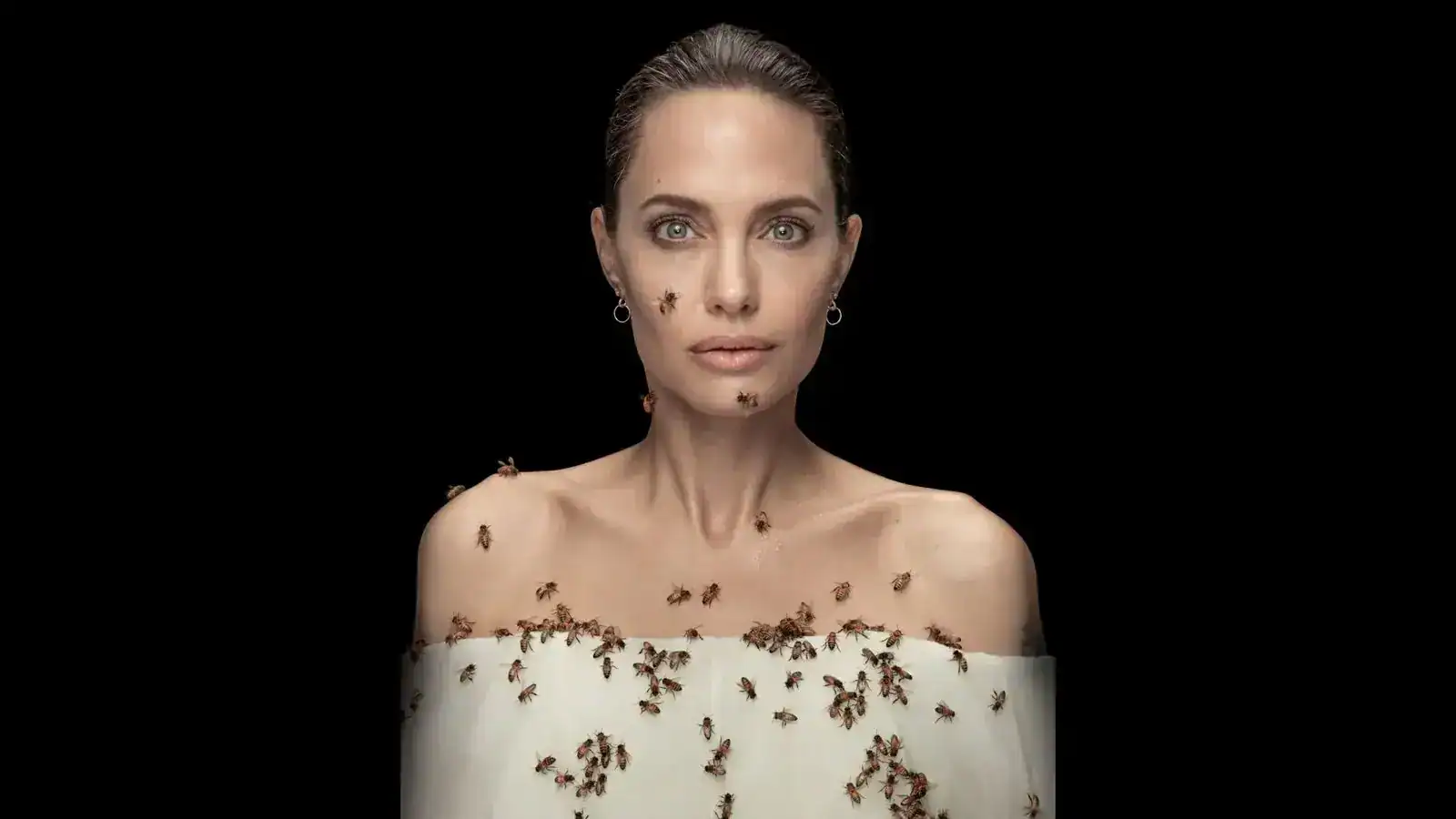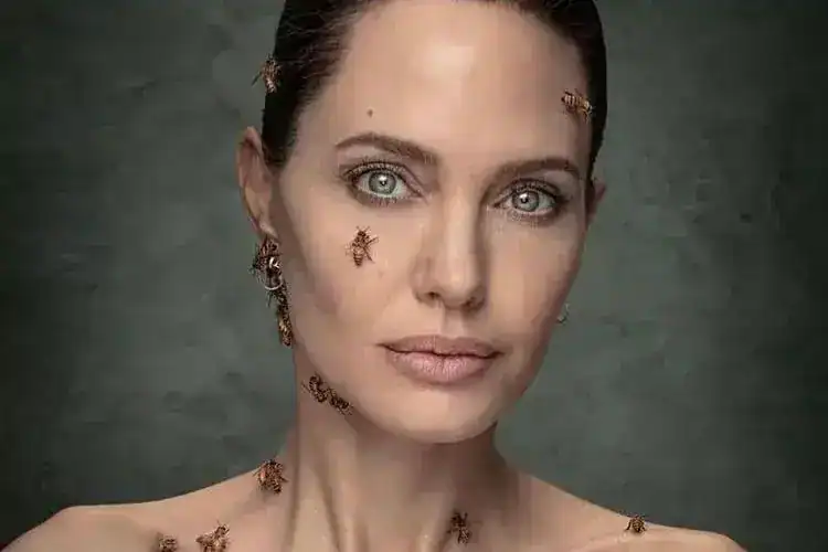 Durante la sesión, la actriz tomó precauciones adicionales: se tapó las cavidades nasal y auditiva con algodón para impedir que los insectos entraran en sus orificios, una medida de seguridad básica cuando se trabaja con enjambres. Asimismo, se aplicó una sustancia química específica sobre la piel que actuaba como señuelo, atrayendo a las abejas de forma controlada y garantizando al mismo tiempo tanto la integridad de Jolie como la estética final de la fotografía.