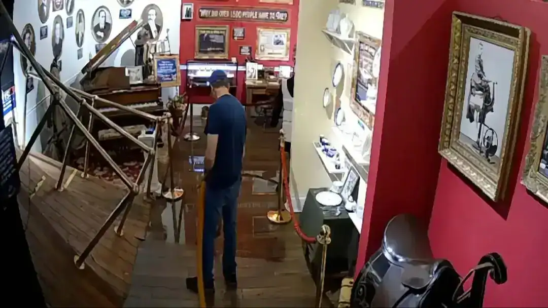 Un empleado observa el área inundada en la exposición del Titanic en el Museo Volo en Chicago (Foto: Instagram).