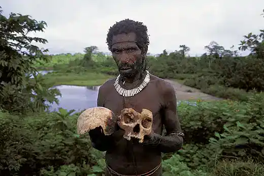 La tribu Fore, situada en las montañas de la región oriental de Papúa-Nueva Guinea, se hizo mundialmente conocida por practicar un canibalismo ritual prolongado hasta comienzos de la década de 1950. Como muestra de respeto y duelo, los miembros de esta comunidad consumían los cuerpos de sus familiares fallecidos, creyendo que de ese modo liberaban al espíritu del difunto y mantenían viva su esencia. Sin embargo, este ancestral hábito funerario estuvo directamente relacionado con la aparición de una enfermedad mortal denominada kuru.